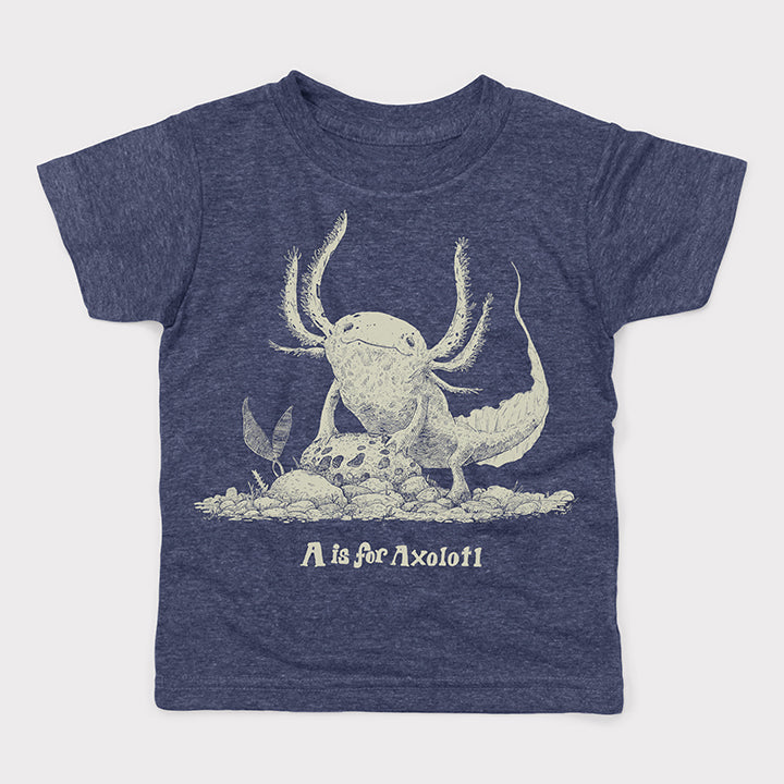 A is for Axolotl - Youth T-Shirt - Hand-Printed on Cotton/Poly Blend