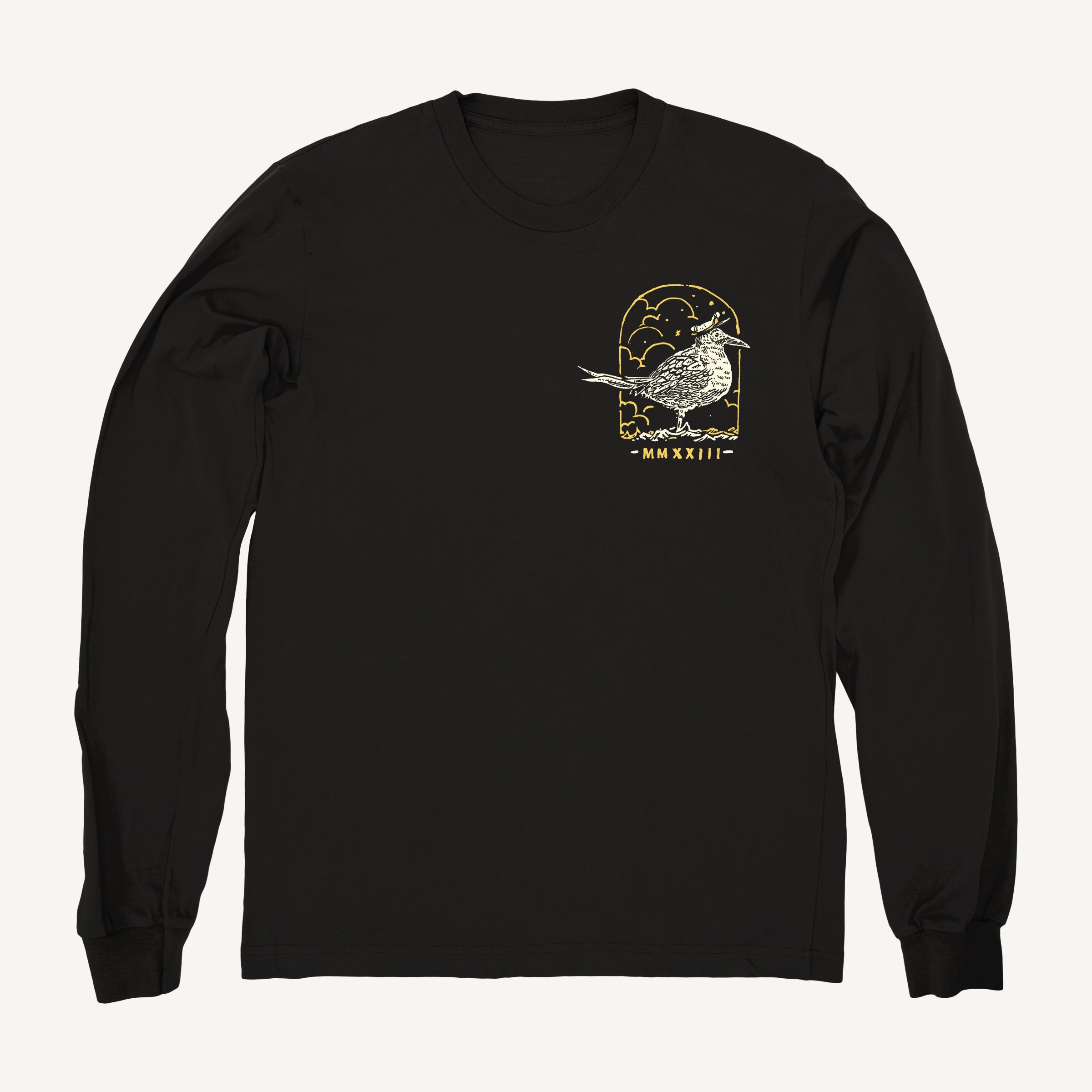 This crewneck sweatshirt features a hand-printed design of a pipe-smoking skull in a sou'wester, and a stylish seagull with a captain's hat. Made from premium 50/50 ring spun poly/cotton fleece, this sweatshirt offers comfort and durability, perfect for any nautical adventure. Available in solid black, 100% made in Canada, and hand-printed in Nova Scotia. Material: 50/50 ring spun poly/cotton fleece Printing: Hand-printed in Nova Scotia Made in Canada