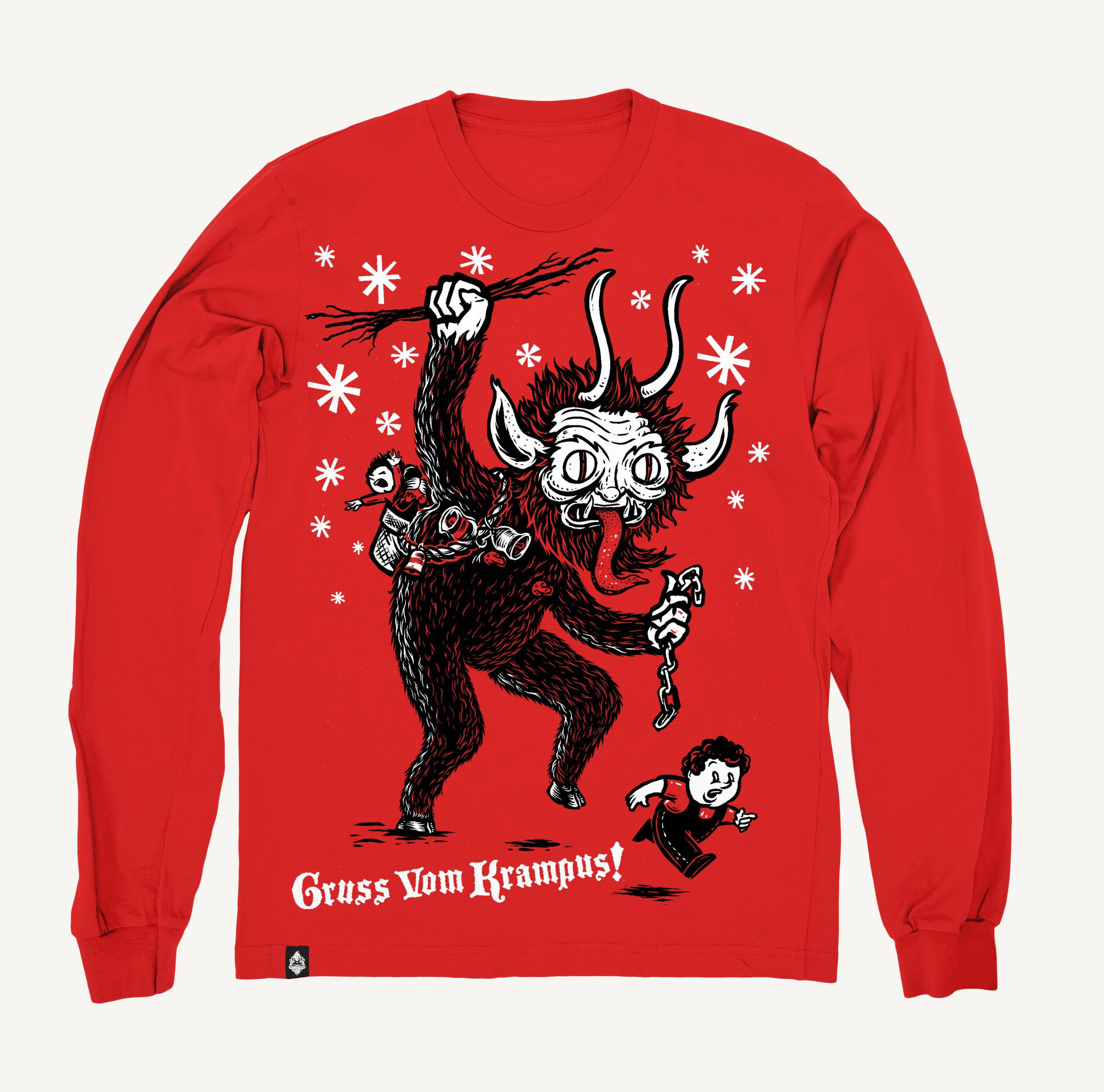 Embrace the dark side of holiday folklore with this Krampus design, hand-printed on a black crewneck sweatshirt. Made from 50/50 ring spun poly/cotton fleece, this sweatshirt is printed using eco-friendly water-based inks. Each piece is made and hand-printed in Nova Scotia, Canada.