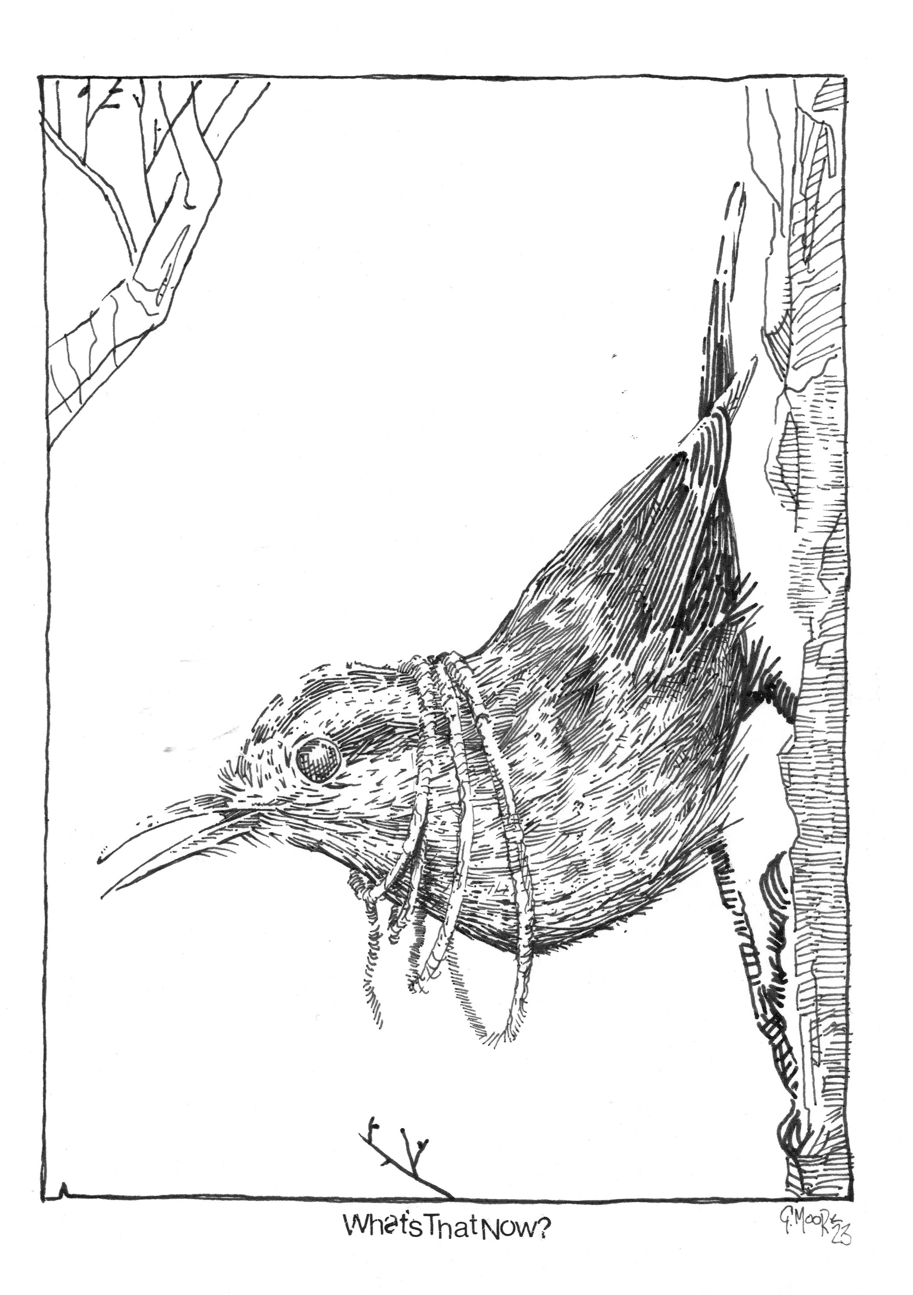 What's That Now? - Original Pen & Ink with letraset lettering Archival ink on Acid Free Bienfang Marker paper, 100% Rag.  Framed to 11" x 14"