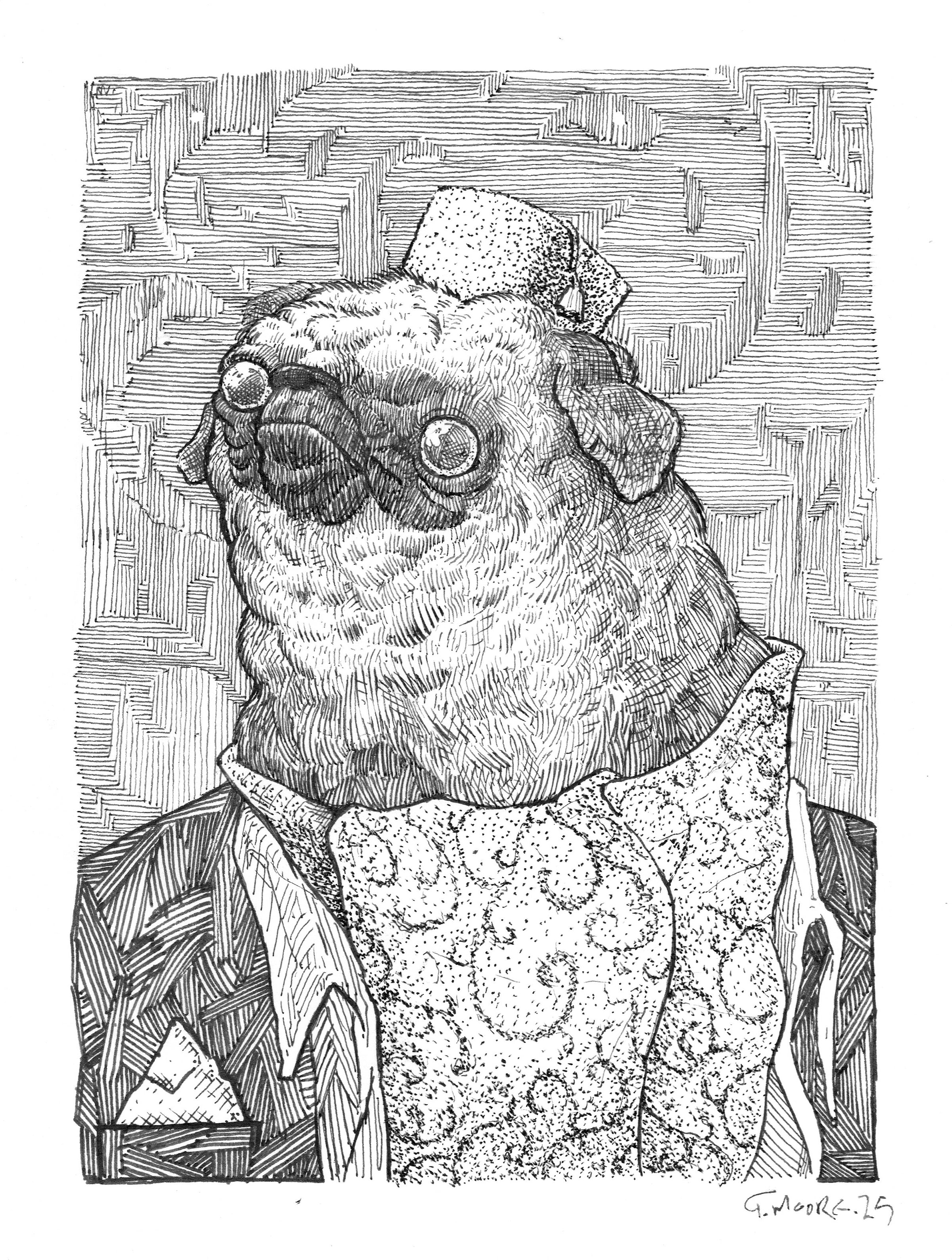 Rusty, the Fancy Pug- Original Pen & Ink