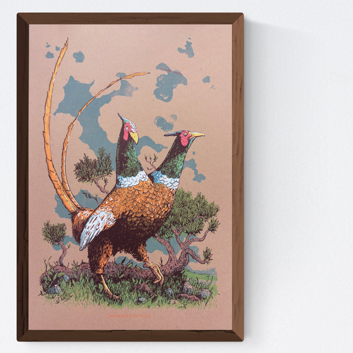 Inspired by the story of Bill and Earline Gill who saw a two headed bird on their property near Sydney River in Cape Breton. I heard the story around the same time that my son and I would often visit a beautiful pheasant in a park near our house, and while the Gill's think the bird they saw was a ruffled grouse, the partridge was way more fun to draw.