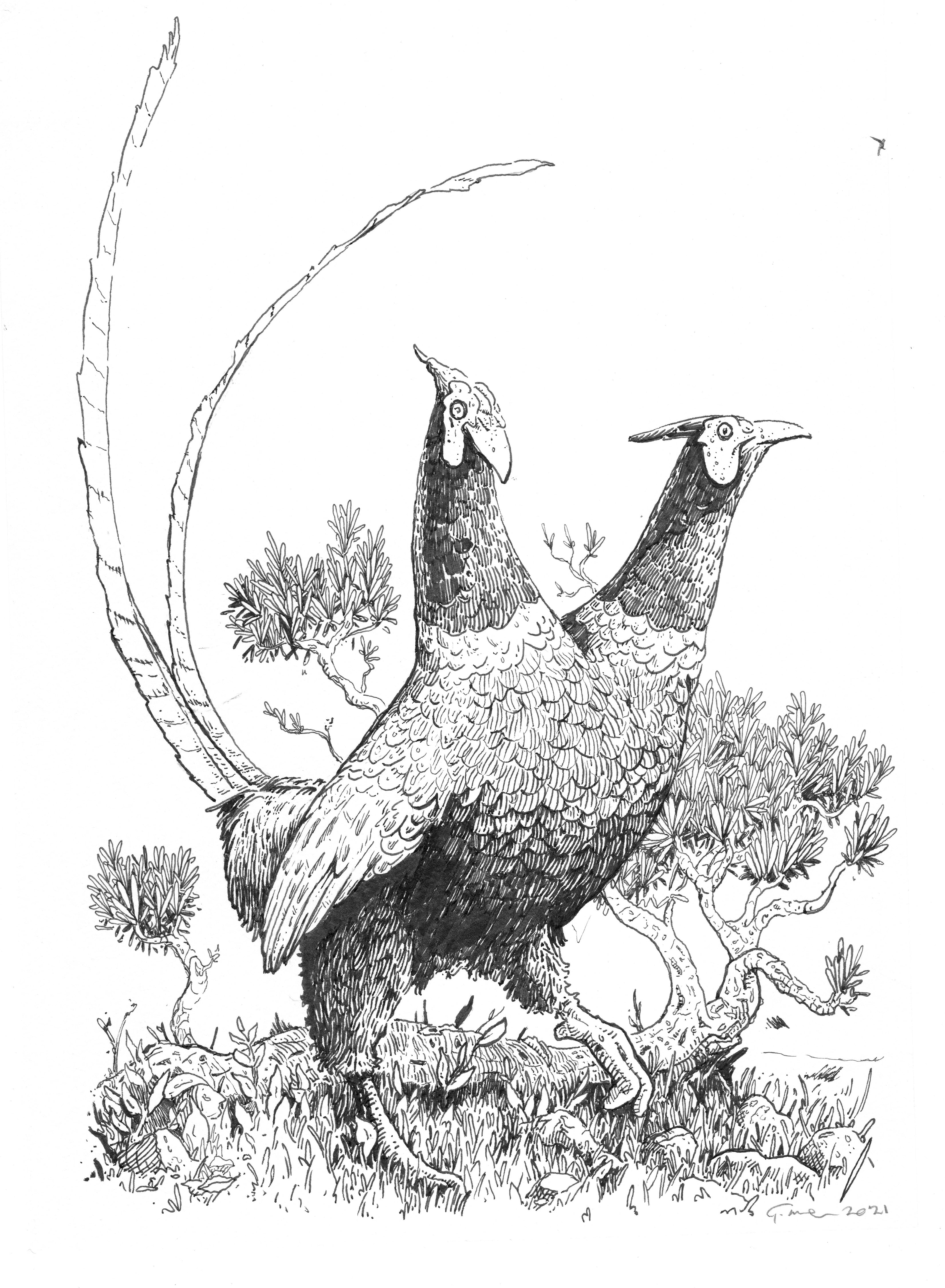 Two Headed Pheasant Study 1 - Original Pen & Ink