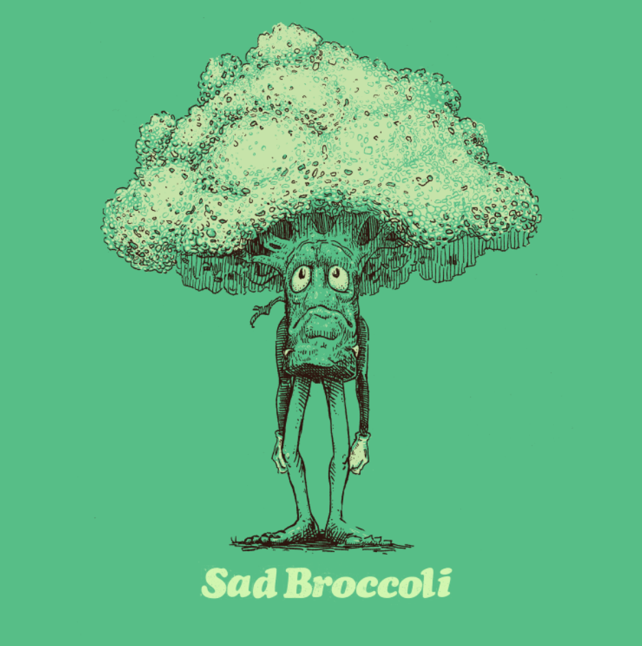 Sad Broccoli T-Shirt - Hand-Printed on Organic Cotton/Poly Blend