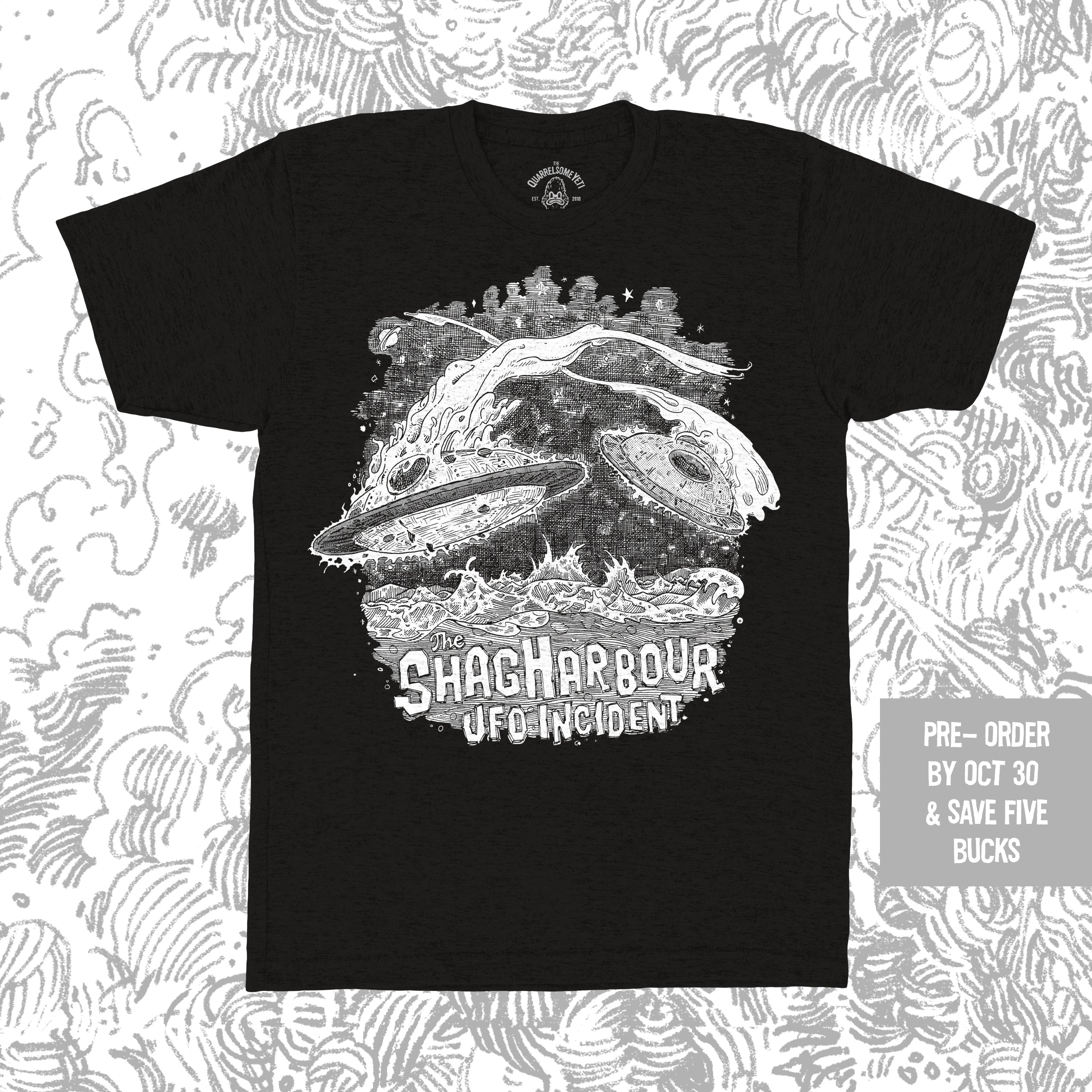 Limited Time Pre-Order This BRAND NEW design is a tribute to a piece of Nova Scotian Sci Fi history: the mysterious Shag Harbour UFO Incident. You can learn more about the event in this great documentary narrated by the one and only John Dunsworth (Mr. Lahey from the Trailer Park Boys)  This listing is for a limited-time pre-order that runs for 10 days only—don't miss your chance to guarantee your size. * Pre-Order Dates: October...